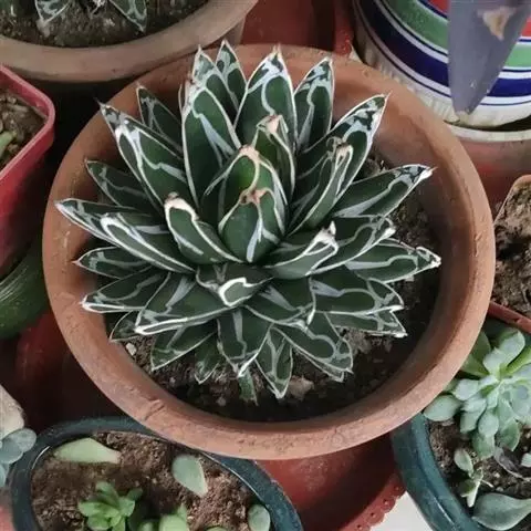 翻盆:因生长慢,不需经常换盆。只是在根茎部生长有较多的分蘖时,才需进行翻盆,一般2~3年翻盆1次。翻盆宜在春天或初夏时进行。翻盆时要剪除部分老根及烂根,保留白色的新根,并换上新土。喜肥沃疏松和排水良好、含适量石灰质的砂质壤土,基质可用腐叶土、园土和粗砂等材料配制,并加入适量的骨粉或贝壳粉等石灰质材料。对名贵的王妃雷神锦等品种,最好用颗粒较粗的赤玉土(原产于日本的一种种植用土)种植。