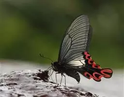曙凤蝶是凤蝶科、曙凤蝶属蝴蝶。体背黑色,头、颈、胸侧及腹侧具红色鳞毛。雌、雄异型。雄蝶翅黑绒色,…
