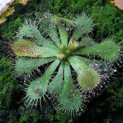 迷你茅膏菜学名圆叶茅膏菜,又名毛毛苔、迷你毛毡苔和迷你茅膏菜,茅膏菜科植物。多年生草本,茎短,叶基…
