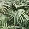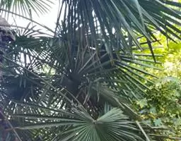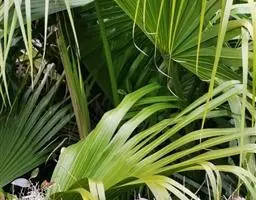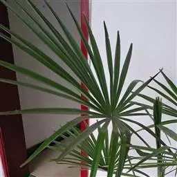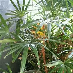 细叶棕竹,灌木,茎细如竹,多数聚生,有网状叶鞘。叶半圆形,掌状深裂,裂片狭长,阔线形,软垂,裂片7…