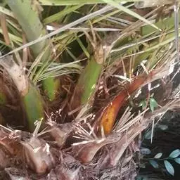 作为切叶栽培的散尾葵,连续采叶2 年后,须对植株进行全面地复壮以及必要的设备维护。主要是遮光设备的维护,因为随着植株的不断生长,遮光设备满足不了植株生长高度的要求,在台风季节, 很容易把荫网弄破。其次是植株的复壮。因为主干明显的生长优势,影响了侧芽的生长,造成产量下降;还有植株的不断分蘖,使株型过大,造成生长空间不够、光线不足、营养跟不上,最终使叶片质量大幅下降。措施是对植株进行全面地复壮修剪和去劣存优, 主要是把过高、过大的主干在离土表30-40厘米处锯掉, 将一些病枝、弱枝剪去;株型太大的可实行分株分丛, 留下6-10个健壮枝条重新种下, 培好土, 淋足定根水。