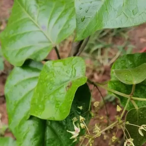 缠绕灌木,多分枝,光滑无毛,茎具纵向细条纹。叶互生,茎上着生的叶多3深裂,长达4.5厘米,宽4厘米,侧裂片长约2厘米,宽约1厘米,先端钝;中裂片卵状披针形,长约4.5厘米,宽约1.8厘米,先端渐尖,基部圆形,两面均光滑无毛,叶柄长约3厘米;小枝上的叶为披针形至卵状披针形,长3-4厘米,宽1.5厘米,先端尖,基部圆形或稍不对称,边全缘;叶柄长约1厘米。