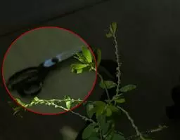 插穗采集:9月中旬间,挑选健康成熟,生长年龄大概在4-10年生的老鼠簕作为母树,在阴天或者晴天的早上和傍晚上,采集生长情况良好、叶片无病虫害、弯曲少、生长年龄1年至2年生的、刚木质化的枝条,采集的枝条约20厘米长,将枝条剪成10厘米长,上方平剪,剪掉侧枝,顶部留1-2片叶,并裁剪掉叶片的三分之二,留下三分之一;下方剪的部位选择在腋芽上方1-2厘米的地方,剪成与水平轴成45°的斜面;以得到插穗,用自来水洗净。