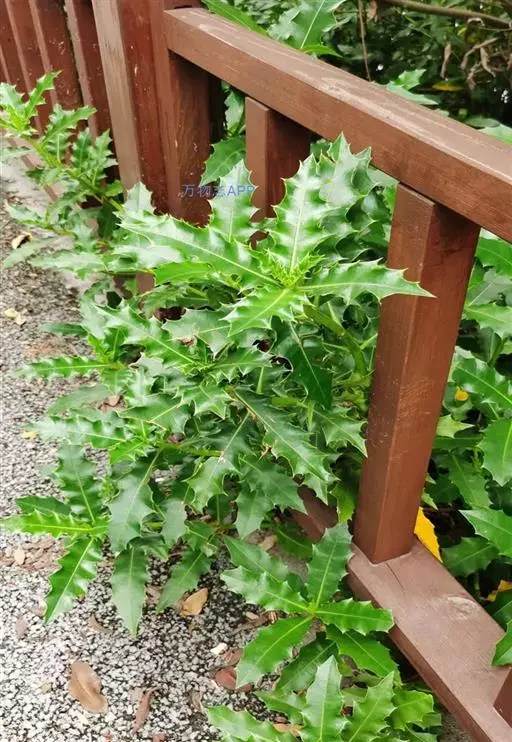 直立灌木,高达2米。茎粗壮,径达9毫米,圆柱状,上部有分枝,无毛。托叶成刺状,叶柄长3-6毫米;叶片长圆形至长圆状披针形,长6-14厘米,宽2-5厘米,先端急尖,基部楔形,边缘4-5羽状浅裂,近革质,两面无毛,主脉在上面凹下,主侧脉在背面明显凸起,侧脉每侧4-5,自裂片顶端突出为尖锐硬刺。