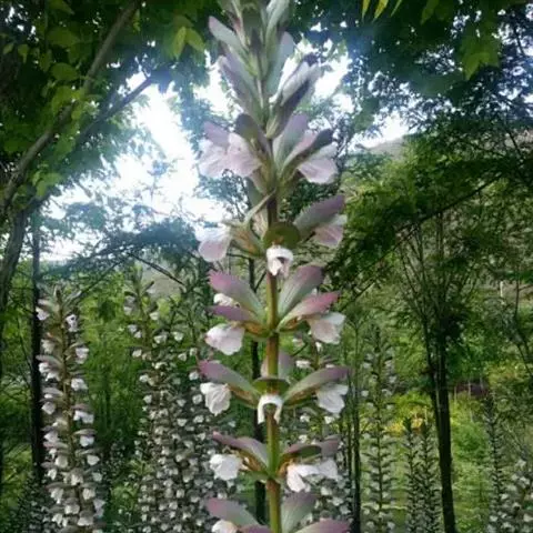 穗状花序顶生;苞片对生,宽卵形,长7-8毫米,无刺,早落;小苞片卵形,长约5毫米,革质;花萼裂片4,外方的1对宽卵形,长10-13毫米,顶端微缺,边缘质薄,有时成皱波状,具缘毛,内方的1对卵形,长约10毫米,全缘。花冠白色,长3-4厘米,花冠管长约6毫米,上唇退化,下唇倒卵形,长约3厘米,薄革质,顶端3裂,外面被柔毛,内面上部两侧各有1条3-4毫米宽的被毛带;雄蕊4,近等长,花药1室,纵裂,裂缝两侧各有1列髯毛,花丝粗厚,长1.5厘米,最宽处约2毫米,近软骨质;子房顶部软骨质,花柱有纵纹,长2.2厘米;柱头2裂。蒴果椭圆形,长2.5-3厘米,有种子4颗。种子扁平,圆肾形,淡黄色。