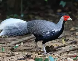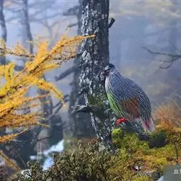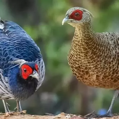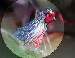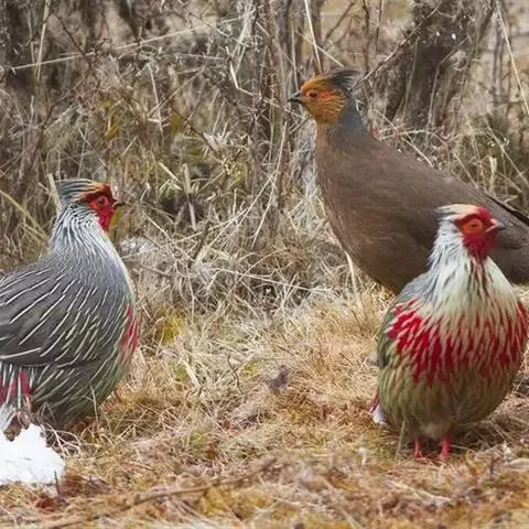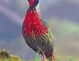 血雉雉科血雉属鸟类,别名血鸡、松花鸡,血雉的雄鸟大覆羽、尾下覆羽、尾上覆羽、脚、头侧、腊膜为红色,…