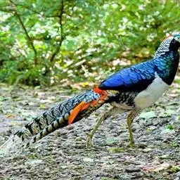 蓝马鸡是珍稀名贵的禽类,羽毛美丽,可作装饰用,头侧绯红,耳羽簇白色、突出于颈部顶上,通体蓝灰色,…