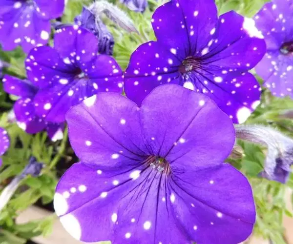 该种花朵硕大,色彩丰富,花型变化颇多,花色有白、粉、红、紫、蓝甚至黑色,以及各种彩斑镶边等色;花冠单瓣、半重瓣、瓣边褶皱状或呈不规则锯齿状。因其花色丰富,视觉效果好,群体表现出众,有着“花坛皇后”之美誉,已成为城市绿化花坛摆放的主要用花。