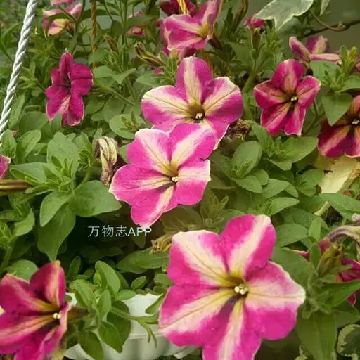 碧冬茄(学名:Petunia hybrida Vilm.)是茄科,碧冬茄属一年生草本植物,高可达60厘米,叶片卵形,顶端急尖,侧脉不显著,花单生于叶腋,裂片条形,顶端钝,果时宿存;花冠白色或紫堇色,有各式条纹,漏斗状,花柱稍超过雄蕊。蒴果圆锥状,种子极小,近球形,褐色。