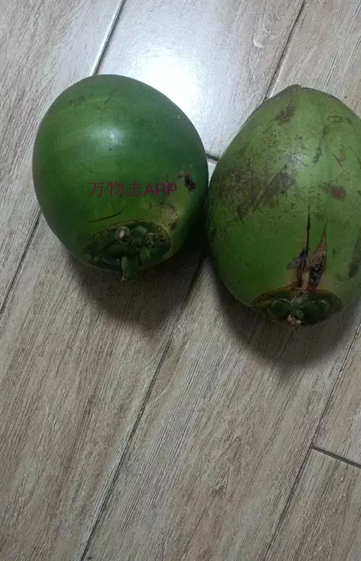 果卵球状或近球形,顶端微具三棱,长约15-25厘米,外果皮薄,中果皮厚纤维质,内果皮木质坚硬,基部有3孔,其中的1孔与胚相对,萌发时即由此孔穿出,其余2孔坚实,果腔含有胚乳(即“果肉”或种仁),胚和汁液(椰子水)。花果期主要在秋季。