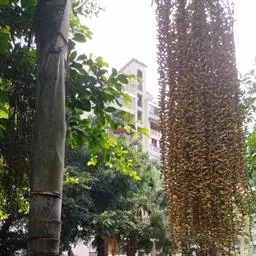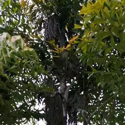 ⑵育苗:苗圃地应选近水源、排水好的沙质土或壤土,深翻25-30厘米,畦宽可种3-4行,行间距离40-45厘米,种植沟深约20厘米,宽度稍大于果种的横径。施入腐熟有机肥与土壤混匀,并铺沙防白蚁。按种间距30-40厘米将催芽处理过的果种斜排沟中,保持幼苗垂直,芽朝同一方向,覆土盖过果种一半,注意要小心操作,不可用力振动果种,幼苗长出后,应适当加覆盖物,并浇足水,苗圃地要加强管理,及时除草、松土,旱季时要经常浇水,但苗圃地不能积水,雨季时要注意排水,春夏季以氮肥为主,可施一些稀粪水,秋季时应施一些钾肥,增强苗木的适应能力,1年后,当苗木生长到约1米时便可出圃栽植。