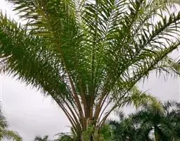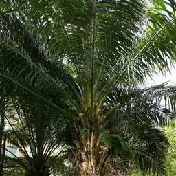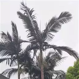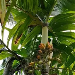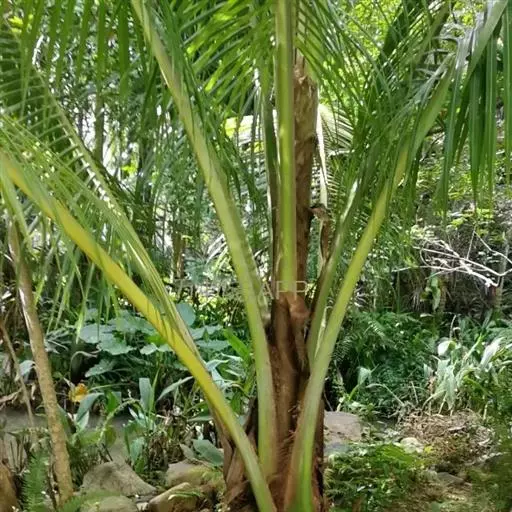 ⑶施肥:椰子树需施全肥,以钾肥最多,其次为氮、磷和氯肥,但必须注意平衡施肥。椰树缺钾时,茎干细,叶短小,树冠中部叶片首先萎蔫,上部叶片向下簇伸,低部叶片干枯、下垂悬挂于树干;缺氮时,幼叶失绿、少光泽,老叶出现不同程度的黄化,结果量减少,椰肉干产量降低;缺磷会引起根系发展不良和果腐;缺氯会影响椰果大小、椰肉干产量以及氮的吸收和植株对水分的利用。因此,施肥时要以有机肥为主,化肥为辅,并施一些食盐。每年可在4-5月及11-12月施肥,在距离树基部1.5-2米处开施肥沟,效果较好。若用撒施法,应全面除草松土后再施肥。