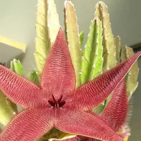 大花犀角是夹竹桃科犀角属的多年生肉质草本植物,茎基部分枝,有齿状突起,灰绿色,形如犀牛角,花大,…