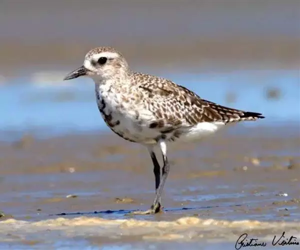 灰斑鸻(学名:Pluvialis squatarola)属小型涉禽。嘴峰长度与头等长,端部稍微隆起。鼻孔线形,位于鼻沟内,鼻沟约等于嘴长的2/3。翅尖形。后趾细小或缺如。跗蹠修长,胫下部亦裸出。中趾最长,趾间具蹼或不具蹼,后趾形小或退化。翅形尖长,第1枚初级飞羽退化,形狭窄,甚短小;第2枚初级飞羽较第3枚长或者等长。三级飞羽特长。尾形短圆,尾羽12枚。是迁徙性鸟类,具有极强的飞行能力。通常沿海岸线、河道迁徙。生活环境多与湿地有关,离不开水。栖息于海滨、岛屿、河滩、湖泊、池塘、沼泽、水田、盐湖等湿地之中。