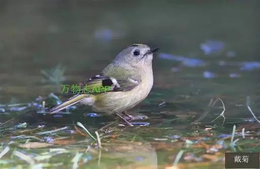 戴菊(学名:Regulus regulus)小型鸟类,体长9~10厘米。上体橄榄绿色。头顶中央柠檬黄色或橙黄色羽冠,两侧有明显的黑色侧冠纹,眼周灰白色。腰和尾上覆羽黄绿色,两翅和尾黑褐色,尾外翈羽缘橄榄黄绿色,初级和次级飞羽羽缘淡黄绿色,三级飞羽尖端白色,翅上具两道淡黄白色翅斑。下体白色,羽端沾黄色,两肋沾橄榄灰色。相似种火冠戴菊腰黄色,眼周黑色,脸白色,区别明显。