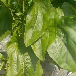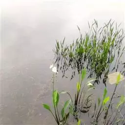 东方泽泻 块茎直径1~2厘米,或较大。叶多数;挺水叶宽披针形、椭圆形,长3.5~11.5厘米,宽1.3~6.8厘米,先端渐尖,基部近圆形或浅心形,叶脉5~7条,叶柄长3.2~34厘米,较粗壮,基部渐宽,边缘窄膜质。花葶高35~90厘米,或更高。