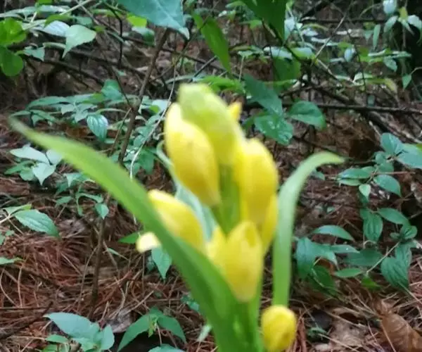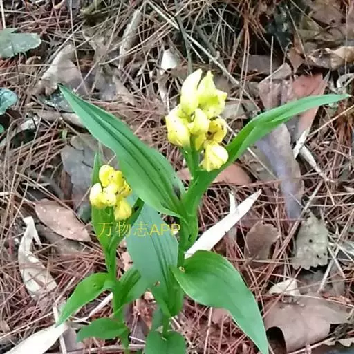 金兰(学名:Cephalanthera falcata (Thunb. ex A. Murray) Bl.):地生草本,高20-50厘米。茎直立,下部具3-5枚长1-5厘米的鞘。叶4-7枚;叶片椭圆形、椭圆状披针形或卵状披针形。总状花序长3-8厘米,通常有5-10朵花;花黄色,直立,稍微张开;花瓣与萼片相似,但较短,一般长1-1.2厘米;唇瓣长8-9毫米,3裂,基部有距。蒴果狭椭圆状,长2-2.5厘米,宽5-6毫米。花期4-5月,果期8-9月。