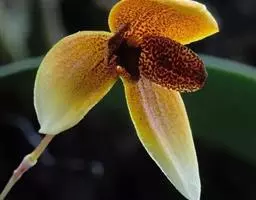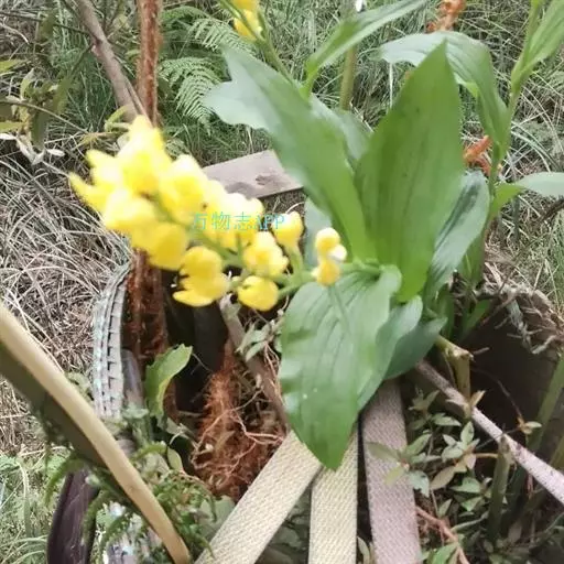 总状花序长3-8厘米,通常有5-10朵花;花苞片很小,长1-2毫米,最下面的1枚非叶状,长度不超过花梗和子房;花黄色,直立,稍微张开;萼片菱状椭圆形,长1.2-1.5厘米,宽3.5-4.5毫米,先端钝或急尖,具5脉;花瓣与萼片相似,但较短,一般长1-1.2厘米;唇瓣长8-9毫米,3裂,基部有距;侧裂片三角形,多少围抱蕊柱;中裂片近扁圆形,长约5毫米,宽8-9毫米,上面具5-7条纵褶片,中央的3条较高(0.5-1毫米),近顶端处密生乳突;距圆锥形,长约3毫米,明显伸出侧萼片基部之外,先端钝;蕊柱长6-7毫米,顶端稍扩大。