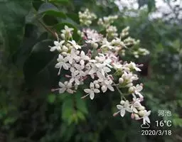 圆锥花序着生于小枝顶端,长1.5-4厘米,宽1.5-2.5(-3)厘米;花序轴、花梗、花萼均被微柔毛或短柔毛;花梗长0-2毫米;花萼长1.5-2毫米,截形或萼齿呈浅三角形;花冠管长3.5-6毫米,裂片狭卵形至披针形,长2-4毫米;花药披针形,长约2.5毫米,短于花冠裂片或达裂片的1/2处;花柱长2-3毫米。果近球形或宽椭圆形,长5-8毫米,径4-6毫米。花期5-6月,果期8-10月。