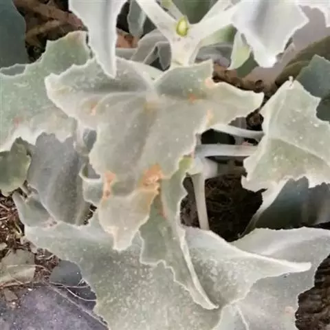 褐斑伽蓝是景天科、伽蓝菜属多年生肉质草本植物或小灌木。全株灰白色,密布白色茸毛。叶片长卵形,…