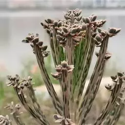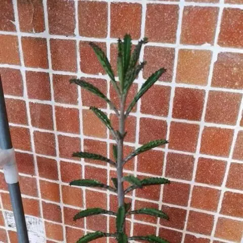 棒叶落地生根是景天科、落地生根属植物。茎直立、粉褐色。叶圆棒形,上表面有沟、粉色,有红褐斑。…