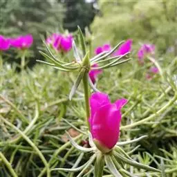 大花马齿苋:一年生草本,高10-30厘米。茎平卧或斜升,紫红色,多分枝,节上丛生毛。叶密集枝端,…