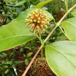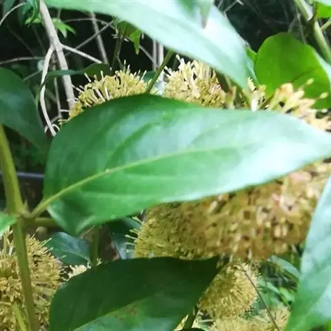 叶革质,卵形或椭圆形,长8-12厘米, 毛钩藤 宽5-7厘米,顶端渐尖,基部钝,上面稍粗糙,被稀疏硬毛,下面被稀疏或稠密糙伏毛。侧脉7-10对,下面具糙伏毛,脉腋窝陷有粘腋毛;叶柄长3-10毫米,有毛;托叶阔卵形,深2裂至少达2/3,外面被疏散长毛,内面无毛,基部有粘液毛,裂片卵形,有时具长渐尖的顶部。头状花序不计花冠直径20-25毫米,单生叶腋,总花梗具一节,苞片长10毫米,或成单聚伞状排列,总花梗腋生,长2.5-5厘米;小苞片线形至匙形;花近无梗,花萼管长2毫米,外面密被短柔毛,萼裂片线状长圆形,密被毛;花冠淡黄或淡红色,花冠管长7-10毫米,外面有短柔毛,花冠裂片长圆形,外面有密毛;花柱伸出冠喉外;柱头长圆状棒形。果序直径45-50毫米;小蒴果纺锤形,长10-13毫米,有短柔毛。