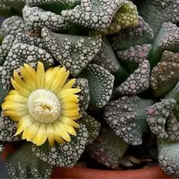 生石花,番杏科生石花属多年生肉质草本植物。植株几乎无茎;花朵较大,颜色艳丽,呈多边形,…