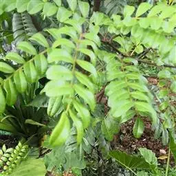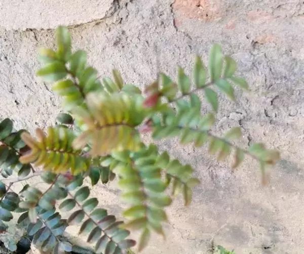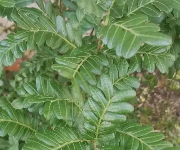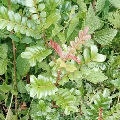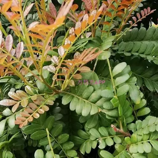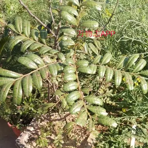 偶数羽状复叶互生,有小叶4-9对,叶轴具狭翅,上面具槽,被灰色微柔毛,叶柄被微柔毛。小叶革质,长圆形或倒卵状长圆形,较小,长1.3-3.5厘米,宽0.8-1.5厘米,稀较大(5×1.8厘米);先端微缺,具芒刺状硬尖头,基部略不对称,阔楔形;全缘,略背卷,两面中脉上被极细微柔毛,侧脉在叶面微凹,在叶背明显突起;小叶柄极短。