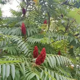 火炬树是漆树科盐麸木属落叶灌木或小乔木;株高,树形不整齐;小枝粗壮,红褐色,密生绒毛;叶轴无翅,…