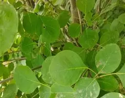 粉背黄栌叶卵圆形,较大,长3.5-10厘米,宽2.5-7.5厘米,无毛,但叶背显著被白粉;叶柄较长,…