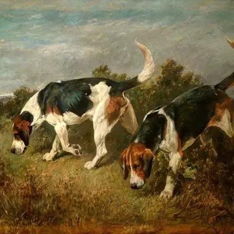 尾巴:尾长,逐渐变细,夹在两后腿之间时贴于髋骨。当犬运动时,尾巴自然下垂,向上轻微弯曲,尾应不高过背部。