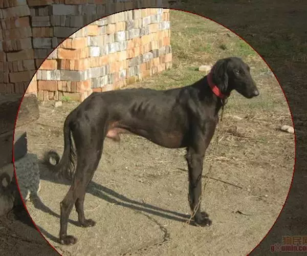 4、腹腔宽大,以便容纳强有力的心脏;腹部上收,线条弯曲;四肢修长有力,大腿肌肉发达,足部趾尖长,关节高隆,似兔脚;尾细长,尾根短,尾端稍弯。