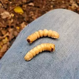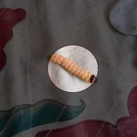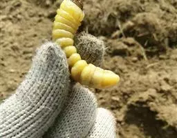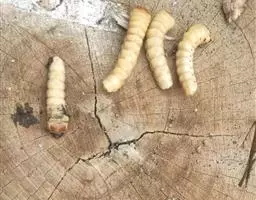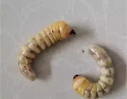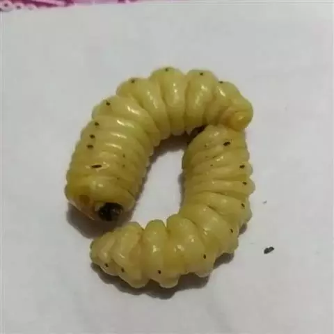 斗米虫为锈色粒肩天牛的幼虫,锈色粒肩天牛主要危害槐树Sophora japonica,…