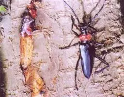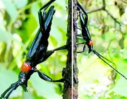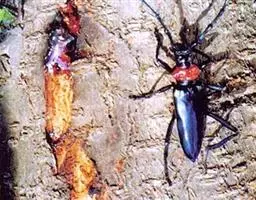 桃红颈天牛是天牛科、颈天牛属昆虫。体黑色发亮,前胸背面大部分为光亮的棕红色或完全黑色。头黑色,…