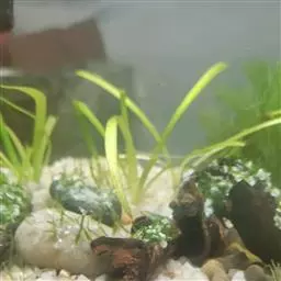 放黑壳虾之类,玛丽和孔雀有帮助,少喂食是为了强制他们吃藻,我放了大概300只黑壳虾和10条黑玛丽。加黑线飞狐最好,对于初期藻害效果很棒。