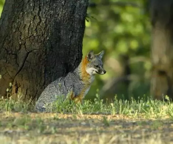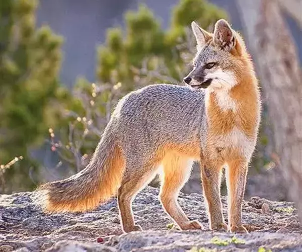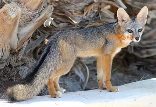 灰狐(学名:Urocyon cinereoargenteus):体长76-112.5厘米,肩高约38厘米,尾长27.5至44.3厘米;雄性体重3600-7000克,雌性体重3400-5400克。最重可达9000克。从眼睛至颈部具有黑色条纹,吻鼻部较短,四肢短,足部趾垫大,爪呈弧形,体毛粗糙,上半部分为灰色,下半部分为金黄色。腹部为白色。