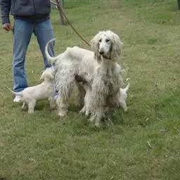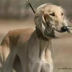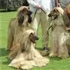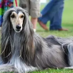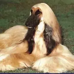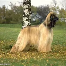阿富汗猎犬全身披丝绢状的长毛,毛色鲜艳,呈多种颜色,背中线附近毛短,…