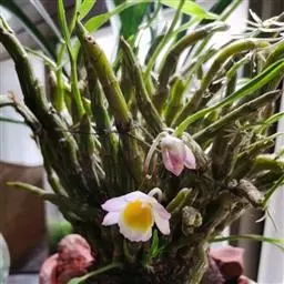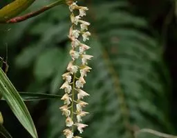 盆距兰 D.Don):茎长5-30厘米,粗5-8毫米,常弧形弯曲,具多数叶。叶二列互生,稍肉质,…