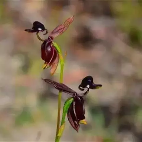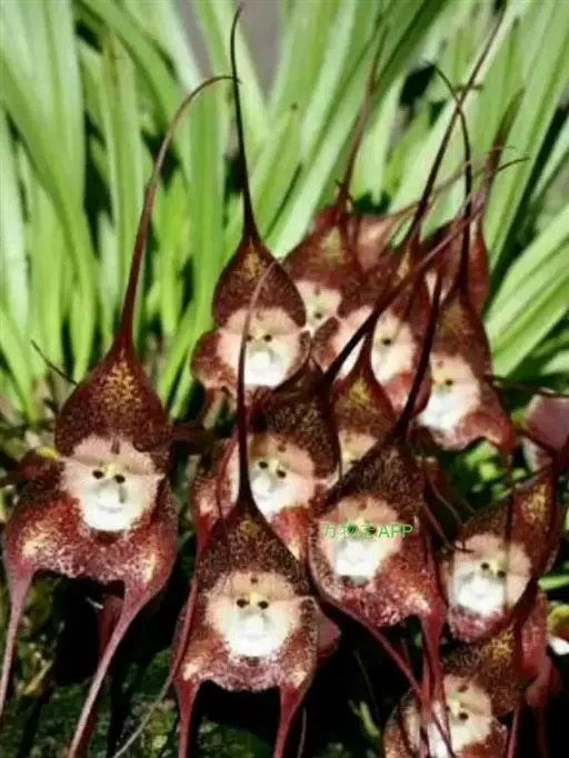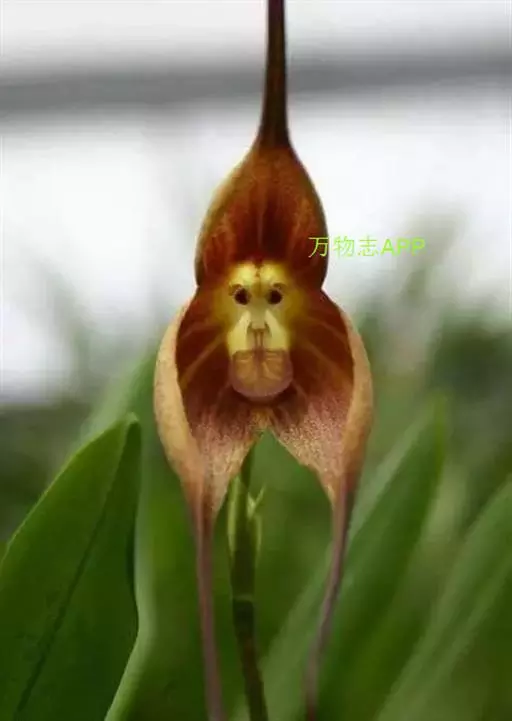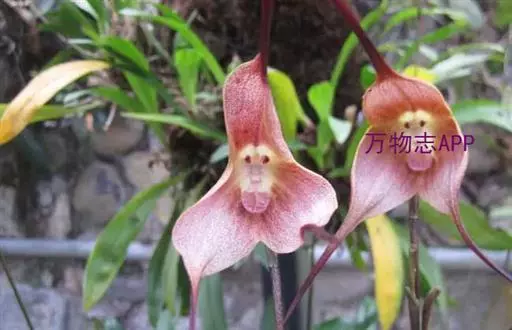 猴面小龙兰(学名:Dracula simia (Luer) Luer):兰科,小龙兰属小型附生兰,高约40厘米,茎粗壮,叶交互对生,倒卵状披针形。花对生在叶腋内,漏斗状,花梗自基部长出,种子细小。4-5月开花。