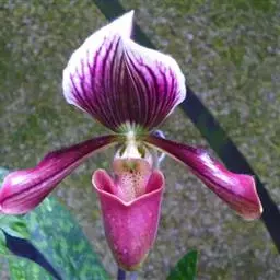 紫纹兜兰 Stein)是兰科兜兰属的地生或半附生植物。叶基生,叶片狭椭圆形或长圆状椭圆形,…