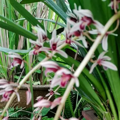 带唇兰:假鳞茎暗紫色,圆柱形,罕为卵状圆锥形,被膜质鞘,顶生1枚叶。叶狭长圆形或椭圆状披针形。…