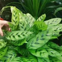 花叶竹芋:竹芋科,竹芋属匍匐状分枝草本植物,植株矮小,高可达40厘米,叶片长圆形、椭圆形至卵形,基…