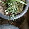 方法一 准备好兰盆及植料后,将兰株倒拿(根在上,叶在下)放于水龙头下以慢水冲洗,但水压切忌过强,以免伤兰根及叶子。用拇指和食指抓住兰头,小指抵住盆缘,用竹筷将根固定,当放入盆内时,尽量不要让根接触到盆壁。将豆粒大的混合石砾倒入盆底至三分之一处。然后倒入中粒植料至五分之四处,填实和尽量不要留下空间。将竹筷拔出,并摇实盆中植料。填实植料后,再用大粒植料埴入至距盆缘1.5厘米处。最后再倒入豆粒大植料,以将假鳞茎全部埋入土中为度,然后充分摇实。用压土工具轻压植料,并将表面弄平。种植完毕后,植料在盆中以中央稍高为好。