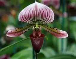 斑叶杓兰:植株高约10厘米,地下具较粗壮而短的根状茎。茎直立,较短,顶端具2枚叶。叶近对生,…