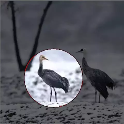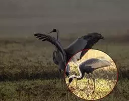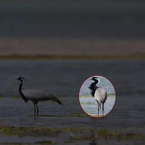 蓑羽鹤大型涉禽,体长68~92厘米,是鹤类中个体最小者。通体蓝灰色,眼先、头侧、喉和前颈黑色,…