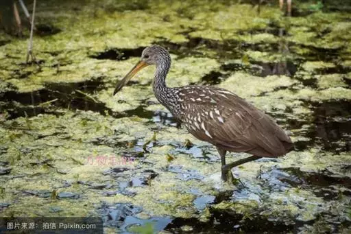 秧鹤(Aramus guarauna),秧鹤科(Aramidae),秧鹤科仅秧鹤一种,体型似鹤,但嘴长而侧扁下弯,后趾较长。秧鹤喜食螺类,栖息于美洲的热带水域和从美国佛罗里达到阿根廷北部的美洲热带、亚热带水域。