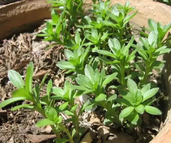 扦插育苗:剪取8—15cm枝条,去掉基部叶片,扦插入土3—5cm,浇透水,20—30天即可移栽定植,也可按定植密度直接扦插,定植密度为行距25cm,穴距15cm,每穴2—3株。北方可在7-8月,截取地上茎,插于扦插床中,扦插过程中要保持土壤湿润,温度在20-30℃,约4-5d生根,生根后可移于大田。生长期间注意松土除草,雨季宜注意排水。