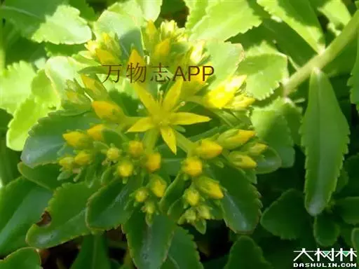 多年生肉质草本,无毛,高可达80厘米。根状茎粗厚,近木质化,地上茎直立,不分枝。叶互生,或近乎对生;广卵形至倒披针形,长5~8厘米,先端钝或稍尖,边缘具细齿,或近全缘,基部渐狭,光滑或略带乳头状粗糙。伞房状聚伞花序顶生;无柄或近乎无柄;萼片5,长短不一,长约为花瓣的1/2,线形至披针形,先端钝;花瓣5,黄色,长圆状披针形,先端具短尖;雄蕊10,较花瓣短;心皮,略开展,基部稍稍相连。蓇葖果5枚成星芒状排列。种子平滑,边缘具窄翼,顶端较宽。 花期6~8月,果期8~9月。 [2-3]