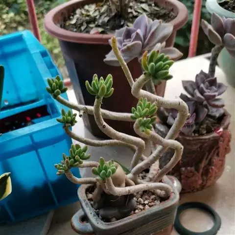 玉米石是景天科、景天属植物。多年生草本多浆植物。植株低矮丛生,多分枝。叶膨大成圆筒形、卵形或近小球形,…